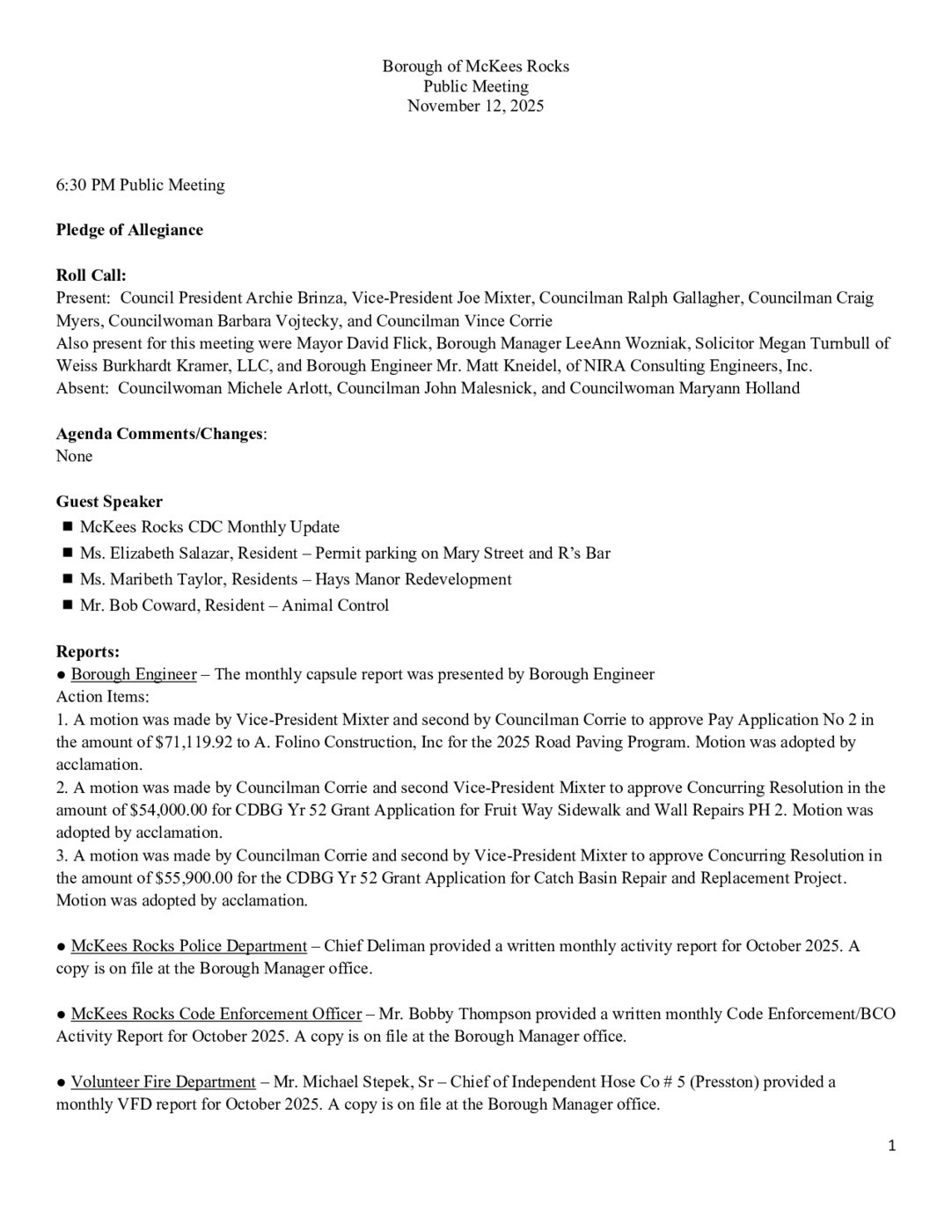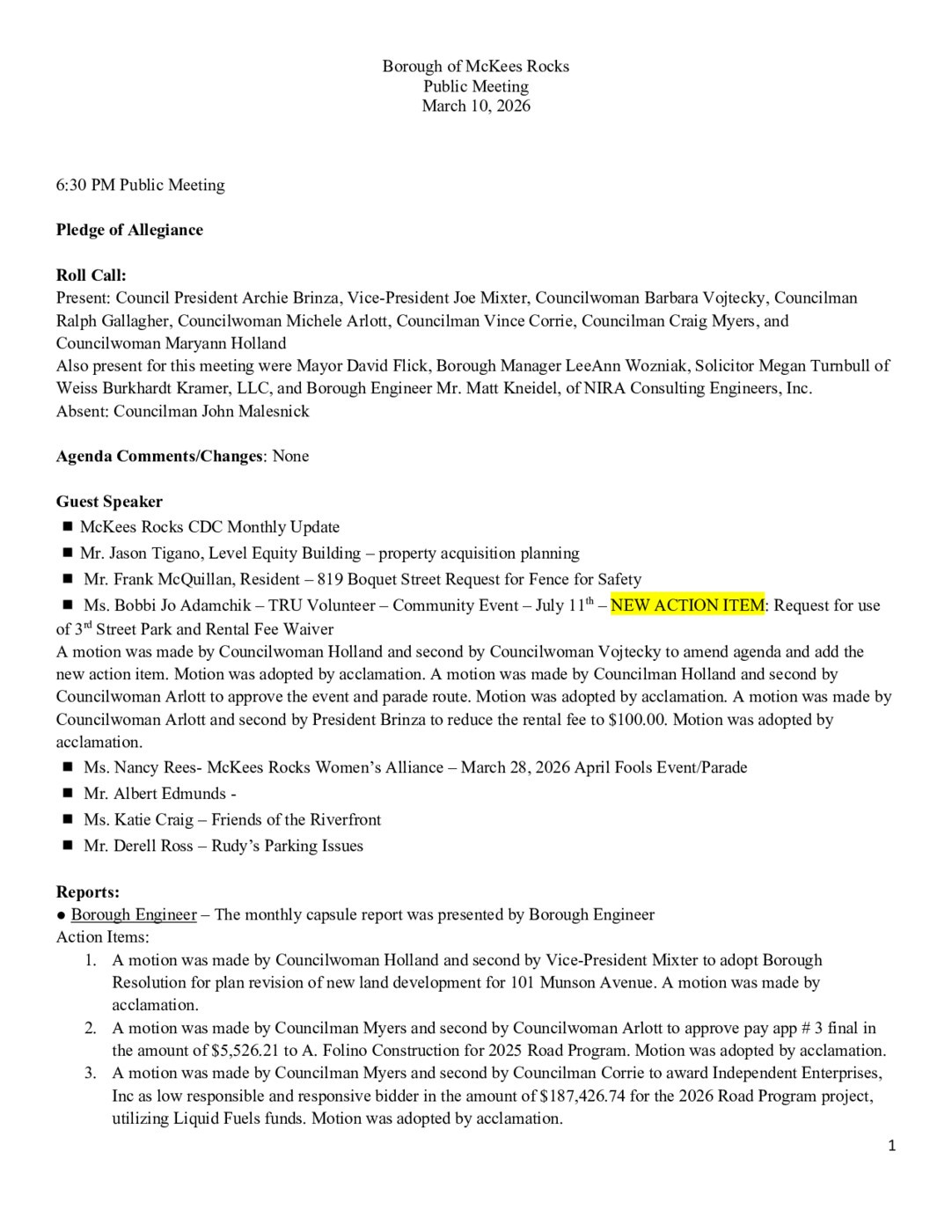 Check out the McKees Rocks Borough Facebook page for informational posts.